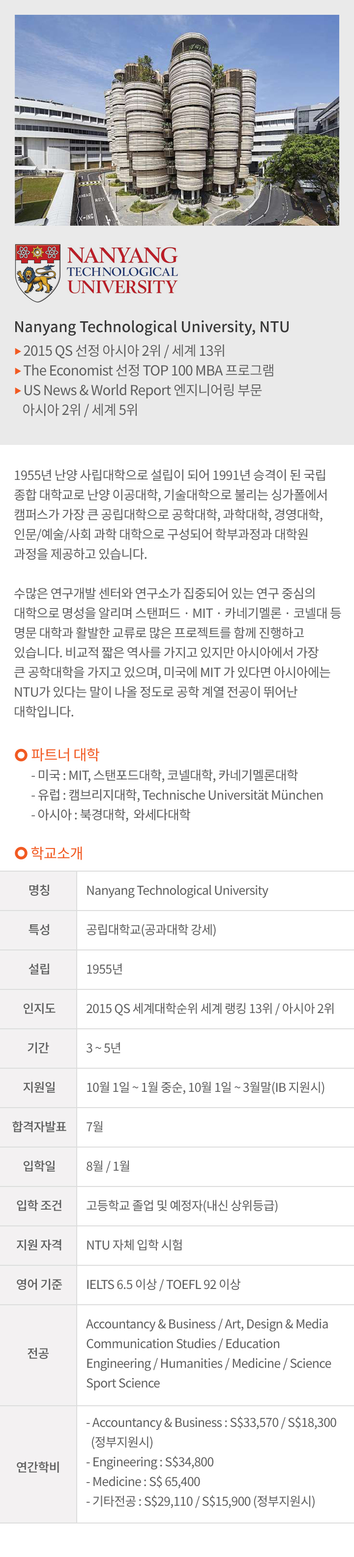 ※ 대상학교 : NUS, NTU, SMU, SUTD 등